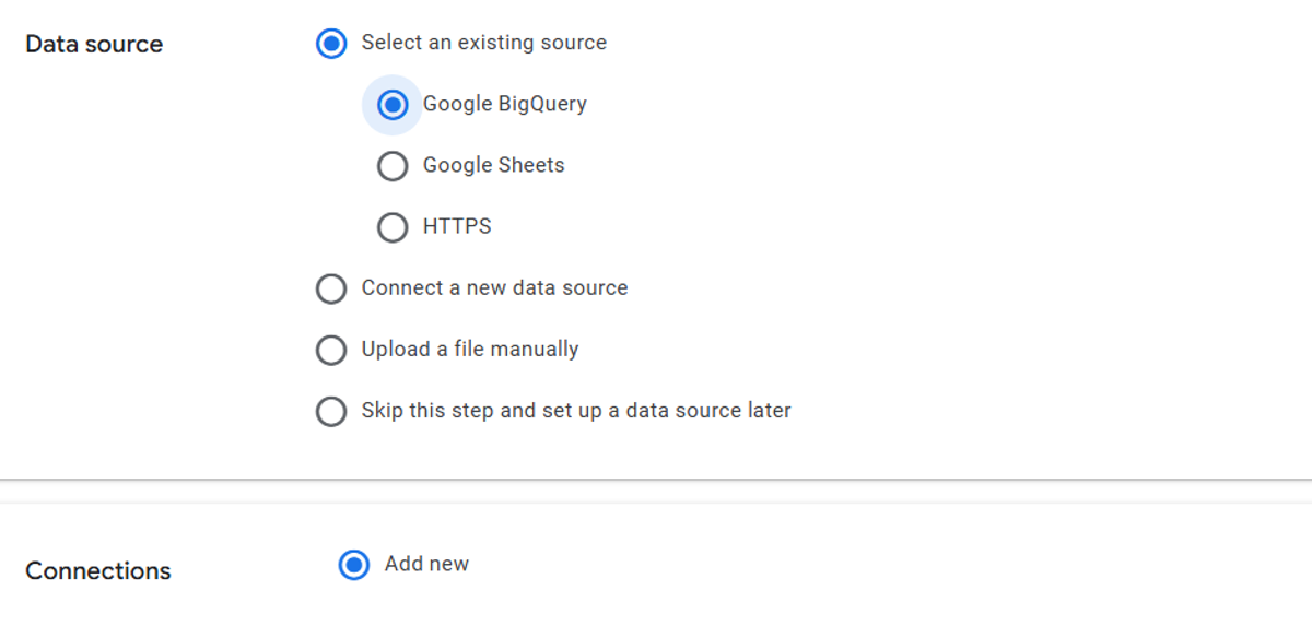 Select Data Source › BigQuery and continue.